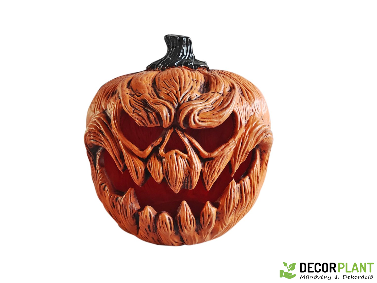 Halloweenkor a faragott sütőtök nem hiányozhat az ajtó elől, az előkertben vagy szobadíszként. Feladatuk, hogy távol tartsák a gonosz szellemeket a háztól és annak lakóitól – minél ijesztőbb a faragás, annál jobb. Az Europalms okker színű halloween tök szörnyű grimaszával tökéletesen teljesíti ezt a feladatot. A teljes magassága körülbelül 25 cm, belülről kifaragva van. A hátborzongató hatás fokozására egy kis LED izzó is elhelyezhető benne. Így lesz belőle tökéletes “jack-o-lantern”.