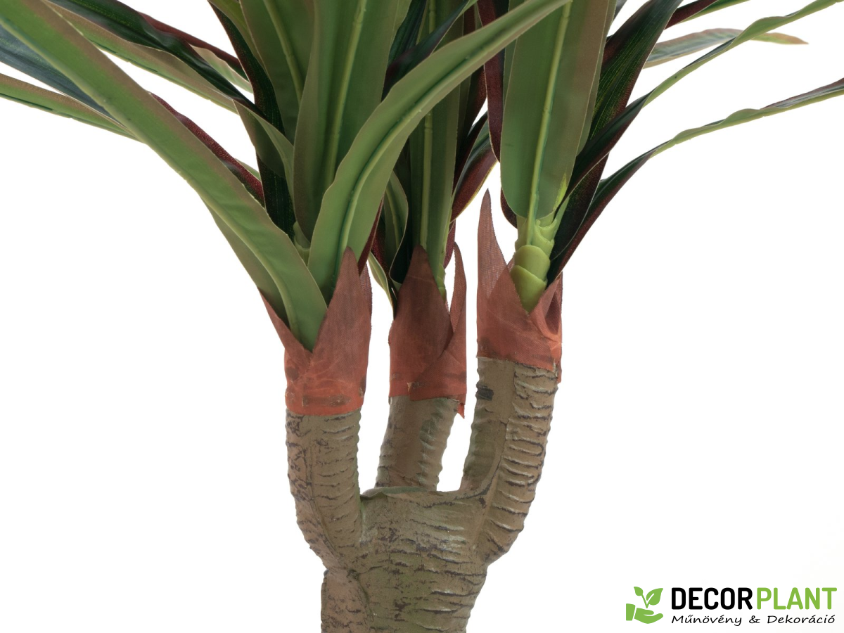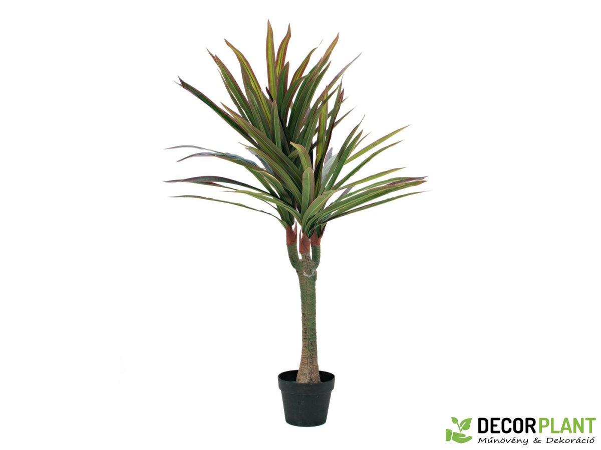 Ez a könnyen kezelhető alternatíva az igazi sárkányfának, botanikailag “Dracaena”-nak, teljesen műanyagból készült. A hosszú, keskeny levelek kiváló minőségű ponyvából készültek. Széleik vörösesbarnára festettek, és komplex ívekben helyezkednek el, amelyek a mesterséges törzsből erednek. Az Europalms Dracenának összesen 3 levélfeje van, amelyek a magasan álló, függőlegesen álló PE törzs végén képződnek. Ezzel a műnövénnyel stílusos botanikai akcentusokat kölcsönöz minden belső trendnek, ami különösen akkor előnyös, ha az általános körülmények nem teszik lehetővé a valódi növényeket. A Dracaena teljes magassága kb. 120 cm-es, és egy foglalat kertész cserépben kerül forgalomba, amely Virágcserépbe helyezve stabilan áll a növénynek.
