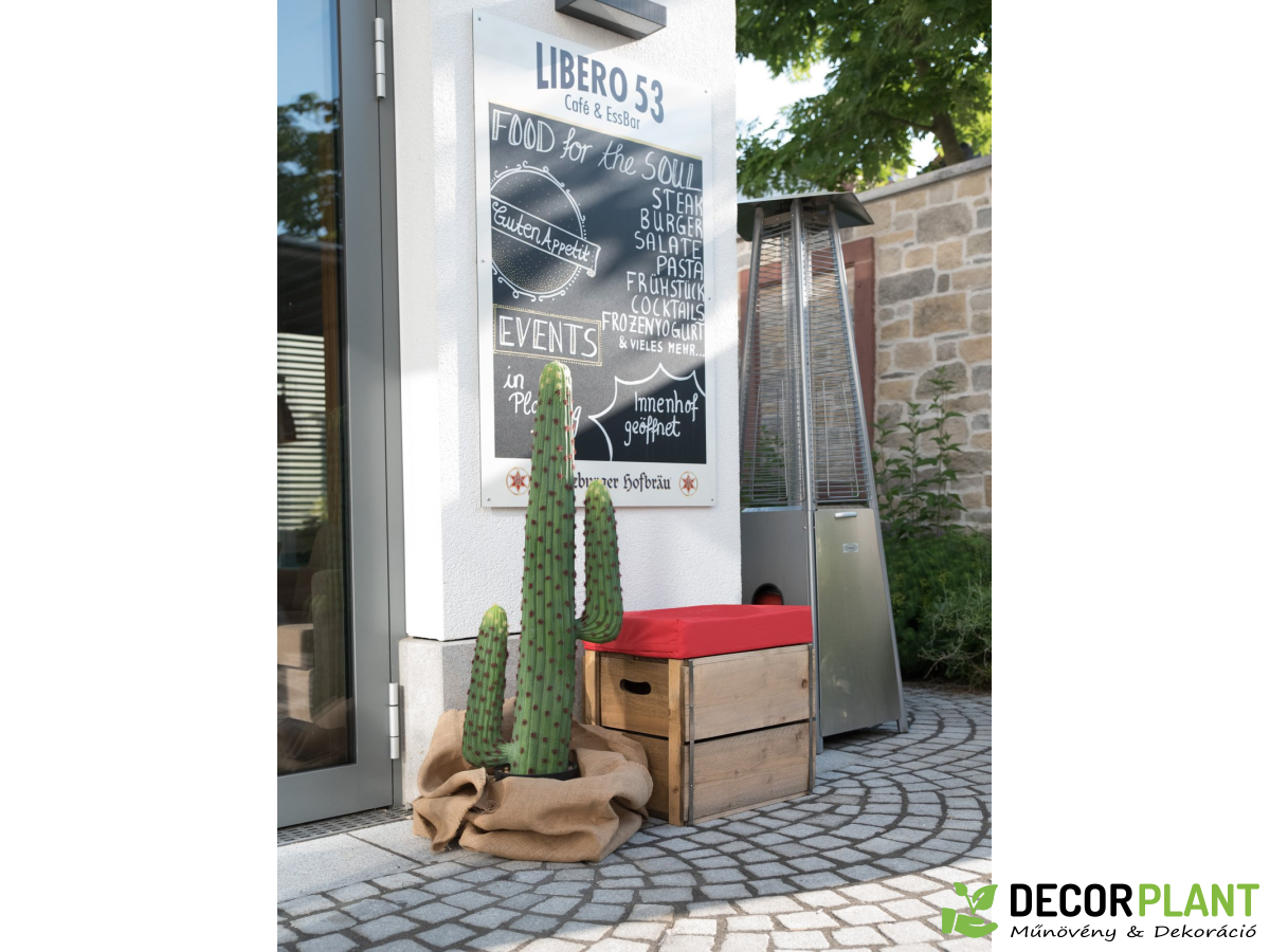 Mire asszociálsz egy tipikus sivatagi tájra? Kaktusz?Akkor az Europalms kétkarú mesterséges mexikói kaktusza sem hiányozhat a dekorációból! A dekorációs tárgy kiváló minőségű műanyagból készült. Részletesen megvalósult többek között a régebbi kis tüskék barna színezése filccel, valamint a csipke friss világoszöldje. Legyen szó a wellness részlegben, bisztróban, üzletben vagy otthonában – mindig szemet gyönyörködtető. A szállításhoz tartozik egy kis kövekkel borított kertész cserep, amely kaspóbe helyezve stabilan áll a növénynek.