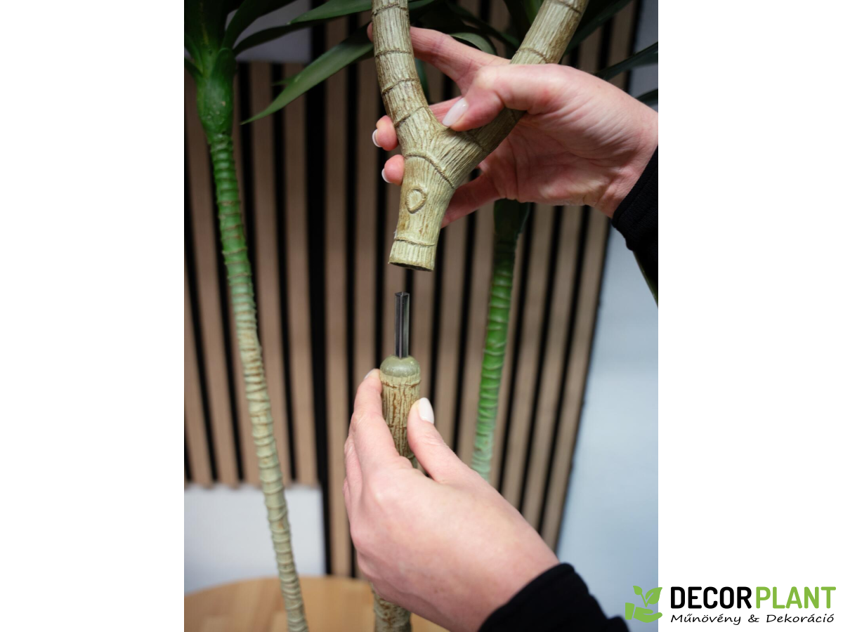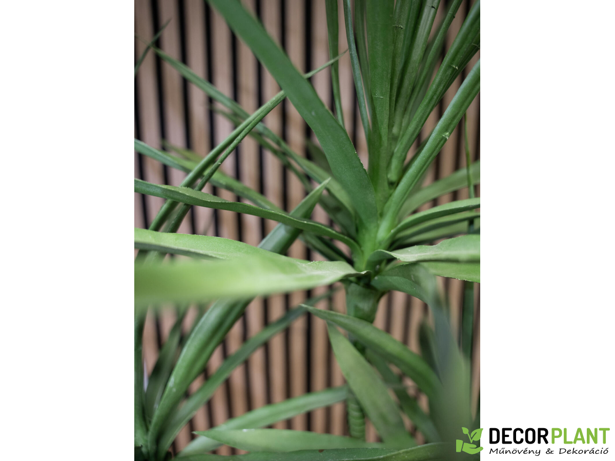 A Dracena, más néven sárkányfa, keskeny szárával és hosszú, keskeny leveleivel lenyûgözi, amelyek kifejezõ és elegáns jelenlétét adják neki. Ennek a növekedési szokásnak köszönhetõen ez egy népszerû beltéri növényzet. Az Europalms mesterséges változata az igazi növény könnyû gondozásának alternatívája, és teljes egészében mûanyagból készül. Három szár van elrendezve egy egyszerû növényi edényben, a középsõ részben a magas szakaszban többször is elágazzák. Ez biztosítja a különösen buja és élénk megjelenést. Ugyanakkor a levelek hangsúlyozzák a mesterséges növény elegáns megjelenését természetes megjelenésû színezésükkel és elegáns akcentussal. Akár elegáns dekoratív elemként a nappali területen, mint az irodák modern formatervezési eleme, akár elegáns növényzetként a vendéglátó területeken – könnyedén alkalmazkodik bármely környezethez. Köszönöm egy okos megoldást, amely biztosítja a helymegtakarítást, csak a központi szakasz fejét kell beilleszteni egy megjelölt szárba, amikor a mesterséges növényt. Hounchlant