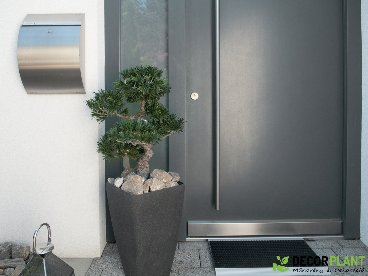 Az Europalms mesterséges bonsai kőtáblája mindig szemet gyönyörködtető: akár a beléptető térben, akár a lakó- és irodahelyiségek professzionális belsőépítészetében. , de nagy karbantartási ráfordítás nélkül.Göcsörtös törzse talaj feletti gyökerekkel és durva, levél alakú tűlevelei teljes egészében műanyagból készültek, és lehetővé teszik védett kültéri elhelyezést is.A már szállított dizájner edénnyel, a A Podocarpus teljes magassága kb. 80 cm.