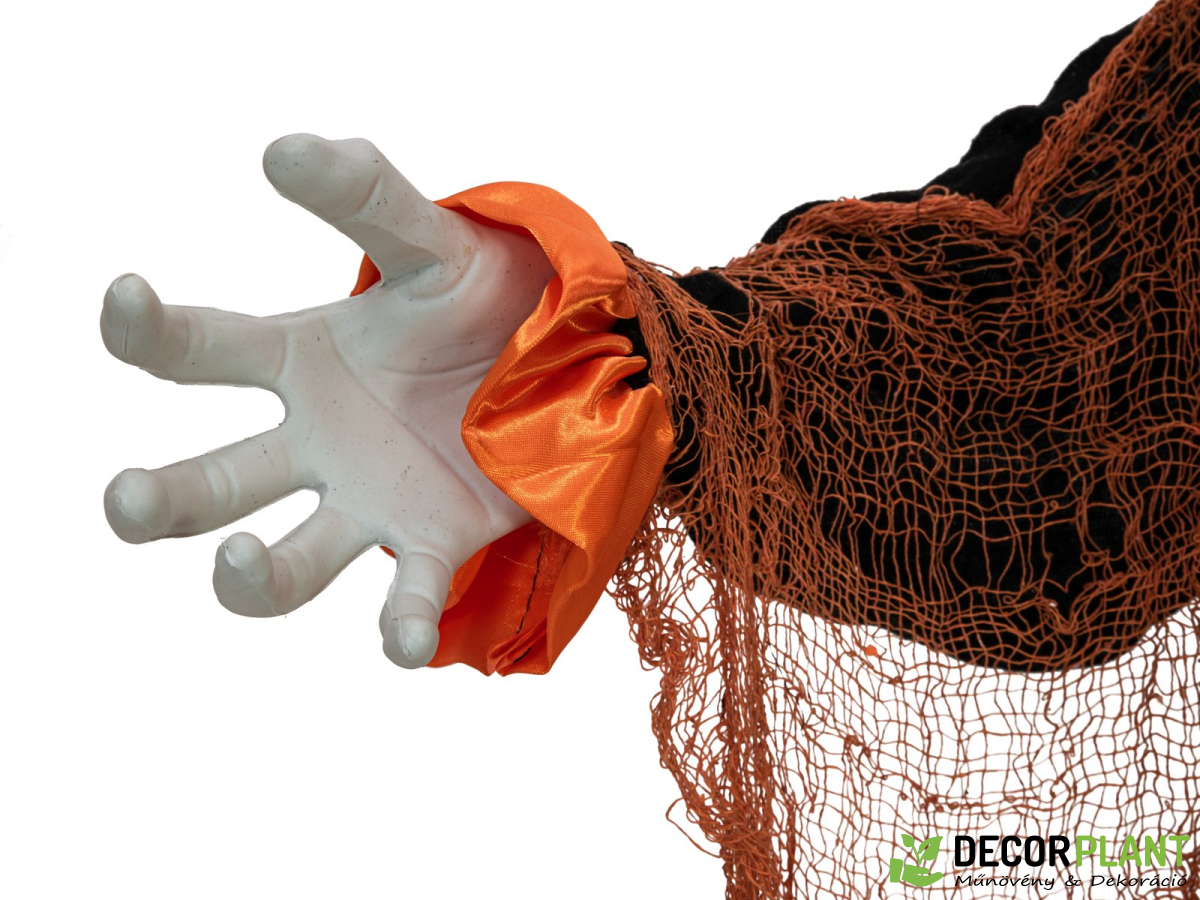 Az Europalms Horror Clownjával horror színterévé varázsolhatja Halloween-ét vagy tematikus partiját. Nála, vicces, szellemes poénjairól közkedvelt kollégáival ellentétben, a hattyúnyak elkerülhetetlen. Annak ellenére, hogy tipikus bohócjelmezt visel, dupla gallérral és durva anyagú kabáttal, elfagy a lélegzetünk, ha az arcára nézünk. A sötét karikák méregzöld szemeit pirosan stroboszkóp LED-ekkel keretezik, és nagyszeru kontrasztot alkotnak fehérre festett arcával. Túlméretezett szája démoni vigyorra nyílik, felfedve a vámpírfogak sorát. A narancssárga haj homályos szegélye teszi teljessé a félelmetes megjelenést. Karja könnyen formába hajlik, és motoros mechanizmussal fel-le mozog. Ezenkívül a fej körkörös mozdulatokat végez. Kísérteties hangokkal kombinálva hallható ijeszto bohóchangja. A bohóc animációja beépített mikrofonon, a “Step here” kapcsolópaddal vagy vezetékes, kézi vezérléssel aktiválható. A dekoratív figura tápellátása a elemes muködés, USB-A kábel 5 V-os muködéshez power bankon vagy tápegységen keresztül.