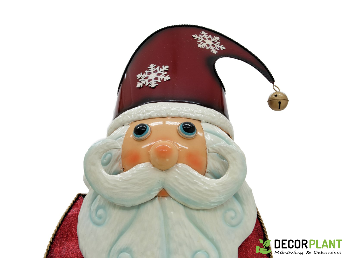Kézzel készített Mikulás figura anyagból. fém, ajándékkal és csengővel, színes kivitel